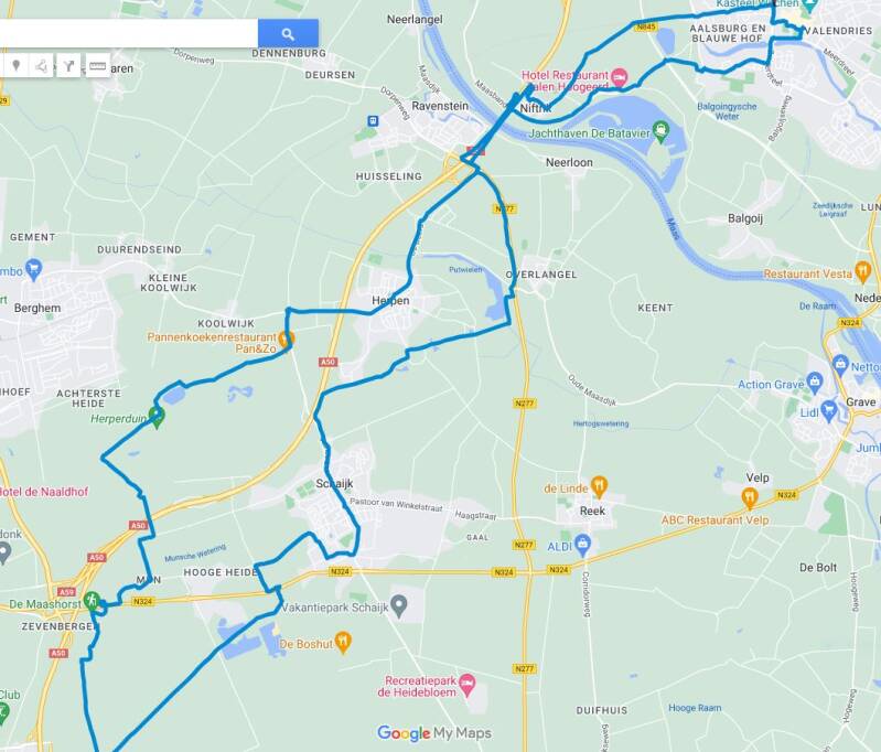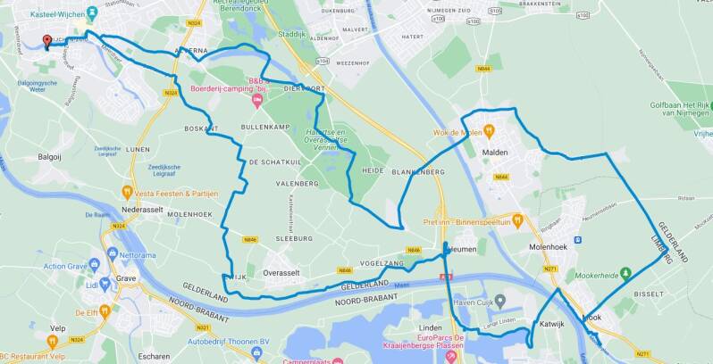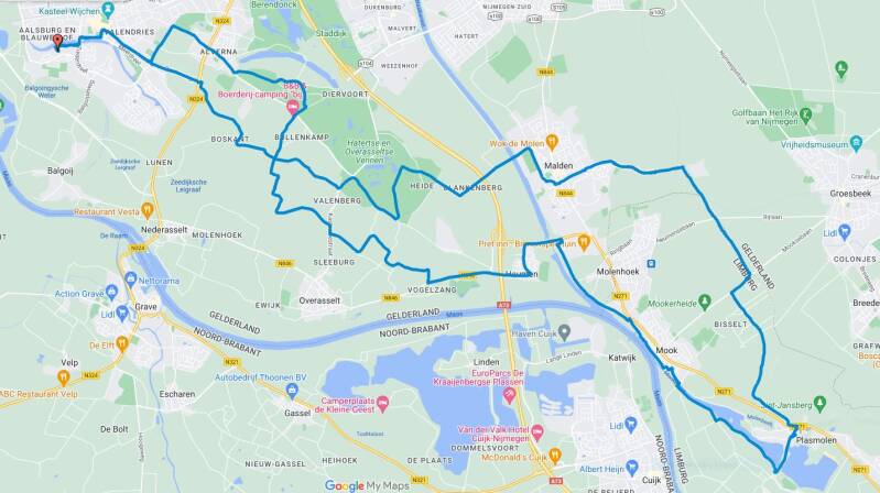Zeer mooie fietstocht route via Malden rijden naar de Plasmolen.
