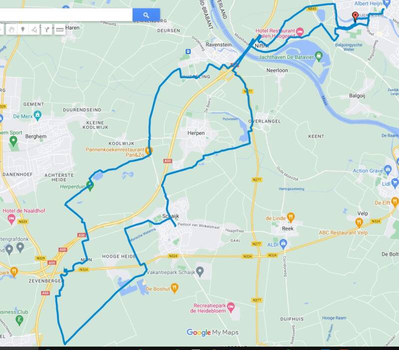 Deze Fietsroute op de heenweg hebben we destijds veel gemaakt met Johan.